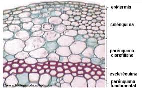 Las plantas tienen tres tipos de tejido fundamental: parénquima colénquima, y esclerénquima.